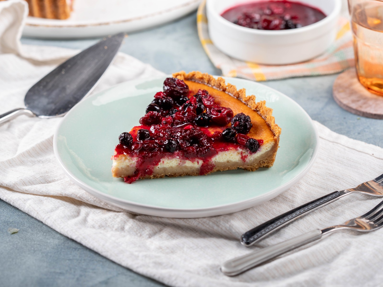 Cheesecake με ρικότα και σάλτσα από βατόμουρα